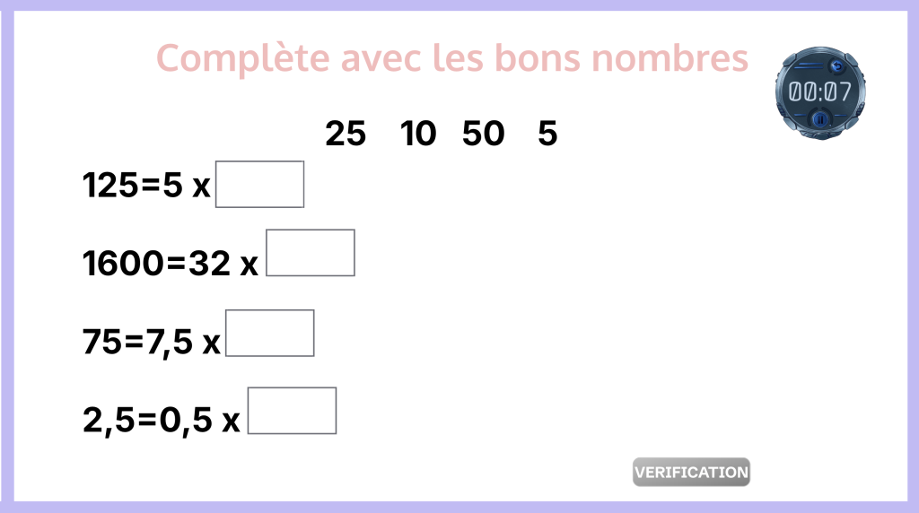Complète avec les bons nombres