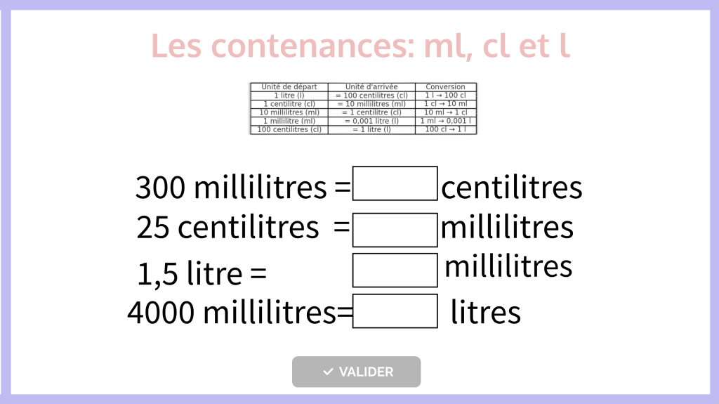 Convertir des contenances