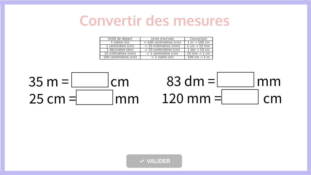 Convertir des mesures